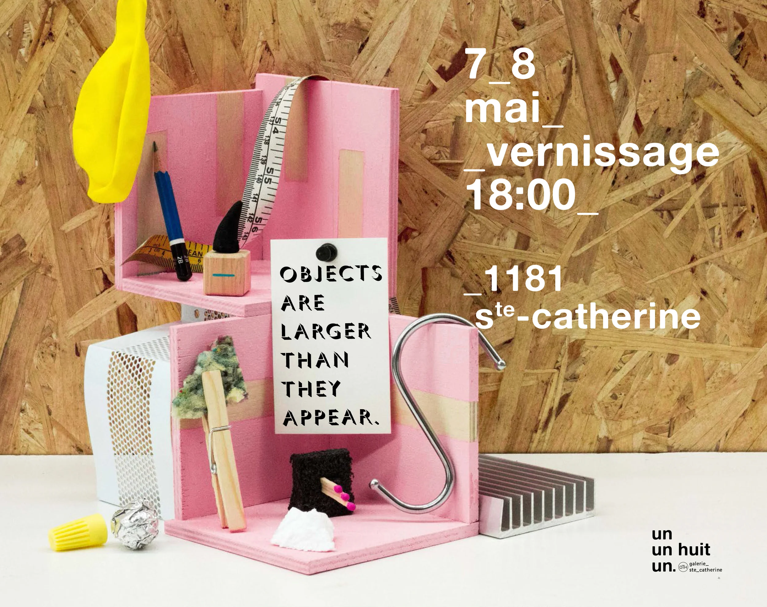 "Objects Are Larger Than They Appear" will be held at 1181 Ste-Catherine O., on May 7th and 8th, as of 6pm. Head over to the Facebook event for more info!
